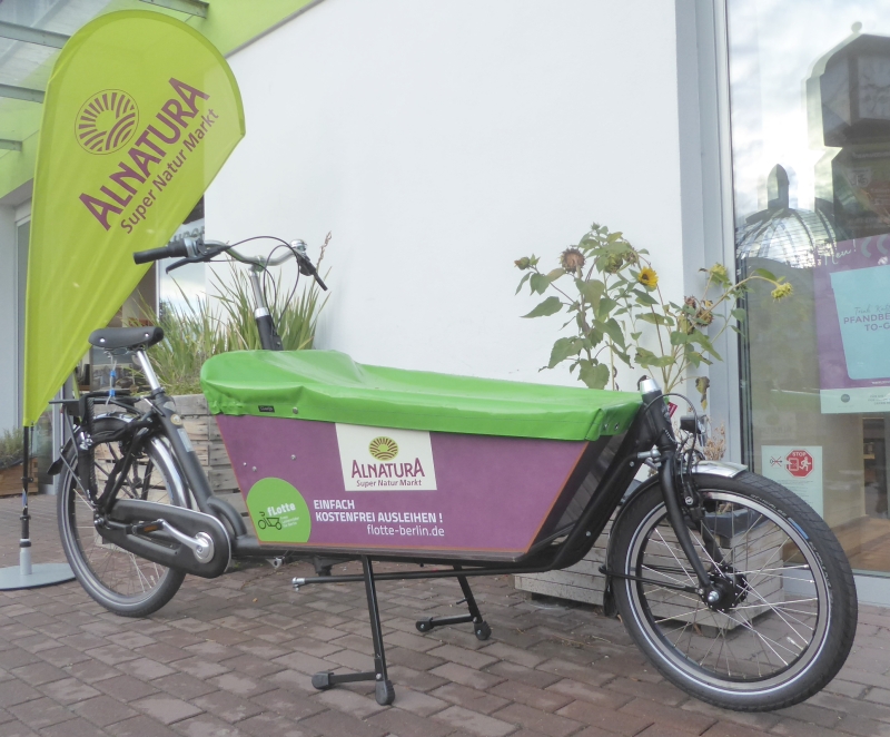 In diesen Tagen werden sieben weitere flotte Bakfietsen an Alnatura Märkten in Betrieb genommen: Friedrich in der Chausseestraße, Müggelkäfer in Friedrichshagen, Heera in Spandau, Ferdinand in Lichterfelde Ost, Else am Nollendorfplatz und Margot in Reinickendorf sind bereit für Touren mit euch. Da fehlt doch die Nr. 7? Weil Bettina immer so viel unterwegs ist, sorgt Salomon in Lichterfelde West für Verstärkung.