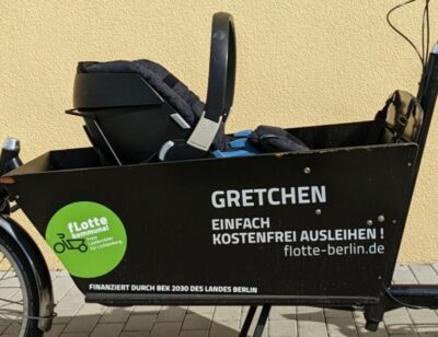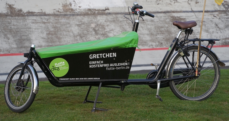 Gretchen ist ein flinkes zweirädriges Bakfiets CargoBike Classic Long und gehört zur fLotte kommunal des Bezirksamts Lichtenberg.