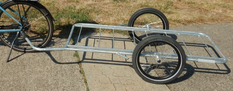 Halker ist ein robuster einfacher Lastenanhänger (Velofracht VF01-01 „Halk“) mit Weber-Kupplung.