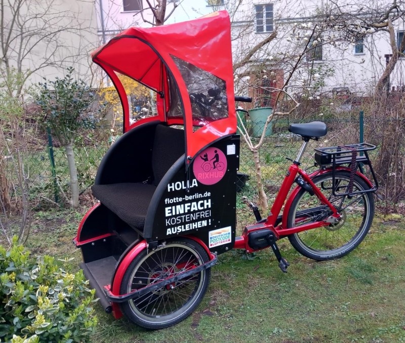 Holla ist eine Bakfiets Rikscha Deluxe und kann zwei Passagiere bequem befördern.