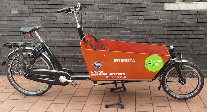 Interista ist ein flinkes zweirädriges Bakfiets CargoBike Classic Long und wird der fLotte zur Verfügung gestellt vom FC Internationale Berlin 1980 e.V.