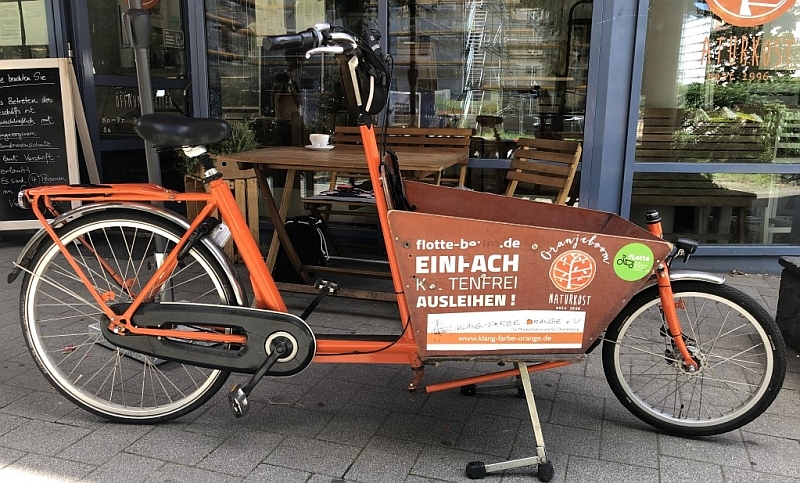 Jette ist ein zweirädriges Bakfiets.nl. Da der Kasten nicht sehr lang ist, ist es ganz schön wendig. Jette hat auf der umklappbaren Sitzbank Platz für 2 Kinder, die unter dem Regendach auch im Winter gut behütet unterwegs sind. Für’s Gepäck gibt’s eine Abdeckplane.