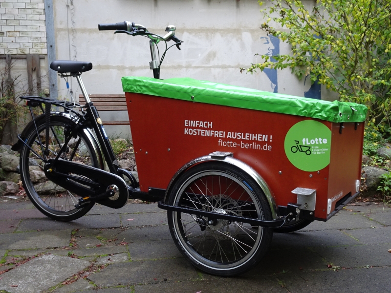 KuGi ist ein solides dreirädriges Bakfiets CargoTrike Classic Wide, das von der Gemeinde Schöneiche bei Berlin zur Verfügung gestellt wird.