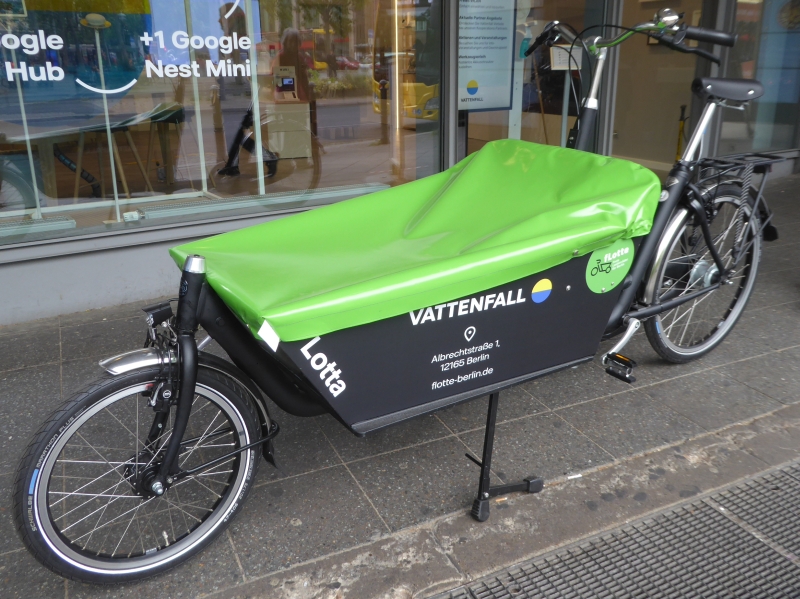 Lotta ist ein flinkes zweirädriges Bakfiets CargoBike Classic Long, das der fLotte von Vattenfall Europe Sales GmbH zur Verfügung gestellt wird.