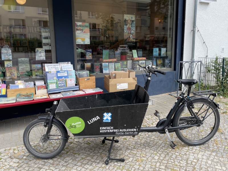Der Gepäckträger verkraftet weitere 25 kg. Die Kiste und ihr Inhalt kann mit einer fLotte-grünen Abdeckplane geschützt werden.