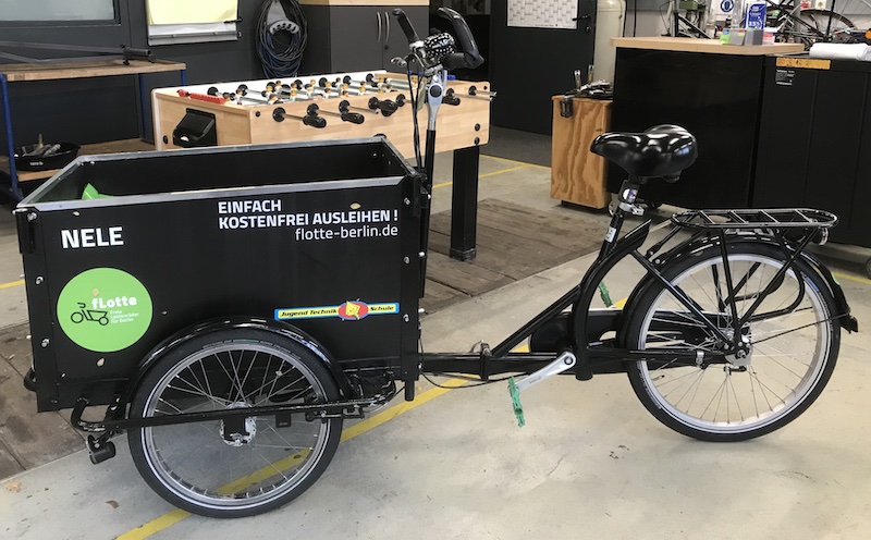 Nele ist ein solides dreirädriges ZONIX Lastenrad mit einer langen Vergangenheit. Es wurde im Rahmen von Re-Use Berlin von engagierten Mitmenschen aus einem Hinterhof geholt, generalüberholt und der fLotte zur Verfügung gestellt.