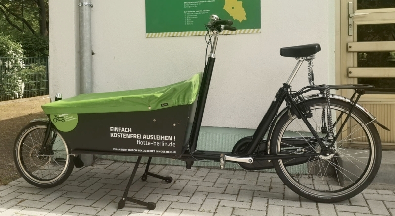 Der Gepäckträger verkraftet weitere 25 kg. Die Kiste und ihr Inhalt kann mit einer fLotte-grünen Abdeckplane geschützt werden.