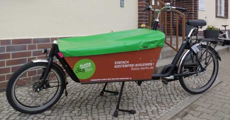 Der Gepäckträger verkraftet weitere 25 kg. Die Kiste und ihr Inhalt kann mit einer fLotte-grünen Abdeckplane geschützt werden.