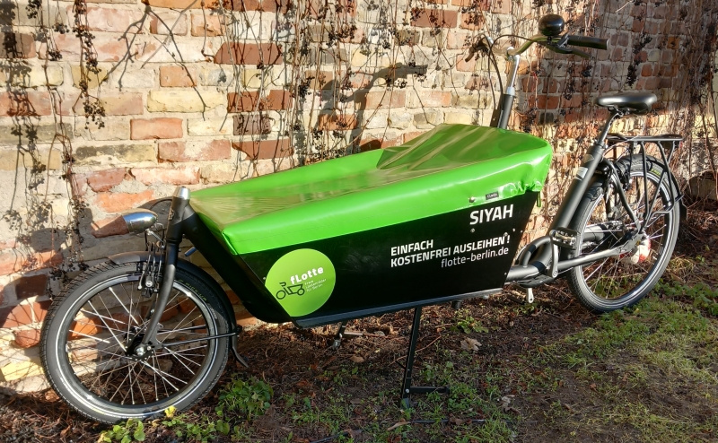 Der Gepäckträger verkraftet weitere 25 kg. Die Kiste und ihr Inhalt kann mit einer fLotte-grünen Abdeckplane geschützt werden.