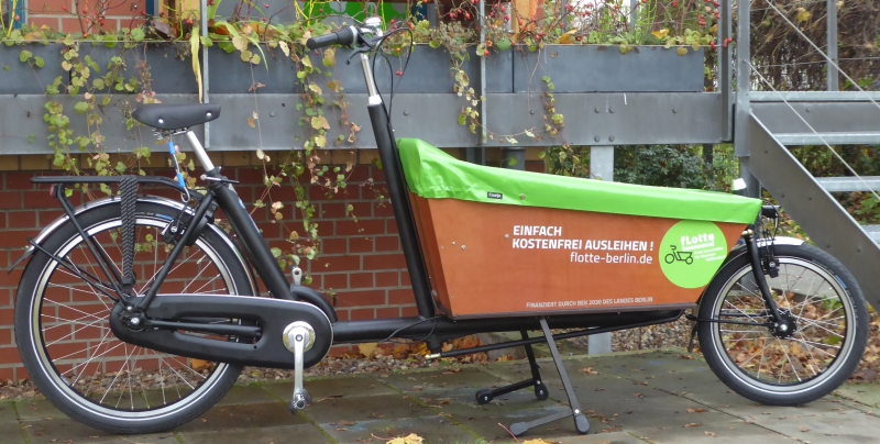 Der Gepäckträger verkraftet weitere 25 kg. Die Kiste und ihr Inhalt kann mit einer fLotte-grünen Abdeckplane geschützt werden.