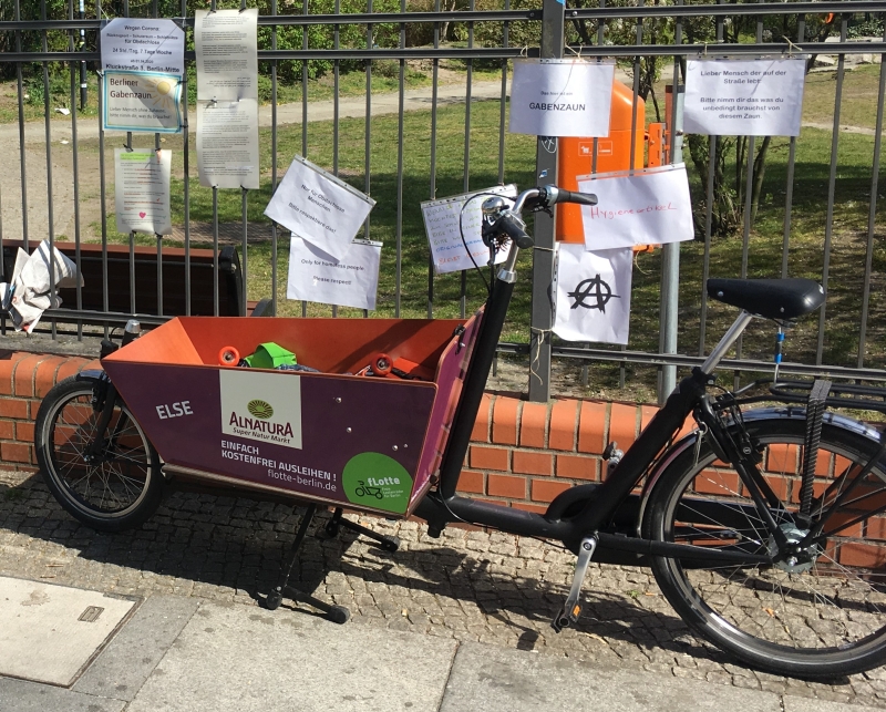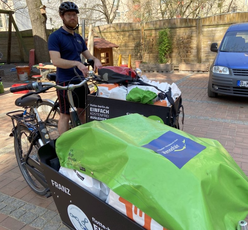 Lebensmittel der Berliner Tafel werden verteilt, Nachbarn mit dem Nötigsten versorgt, und eine Mini-Bibliothek beglückt ihren Kiez mit geistiger Nahrung. Die enge Zusammenarbeit mit den Rebel Riders von XR, mit atmosfair, mit der Berliner Tafel und mit vielen einzelnen HelferInnen macht’s möglich. Der Aktion Mensch danken wir für die finanzielle Absicherung unserer Hilfsaktion.