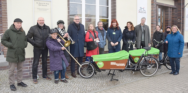 Bei der Taufe mit dabei waren neben der Bürgermeisterin und Henriette & Thomas vom fLotten Team u.a. zahlreiche Engagierte der Klimainitiative Gatow/Kladow, die Spandauer Klimaschutzbeauftragte Corina Weber, die Stadtteilkoordinatorin Gerit Probst sowie VertreterInnen der beiden neuen Ausleihstationen Schilfdachkapelle und 2RadLaden.