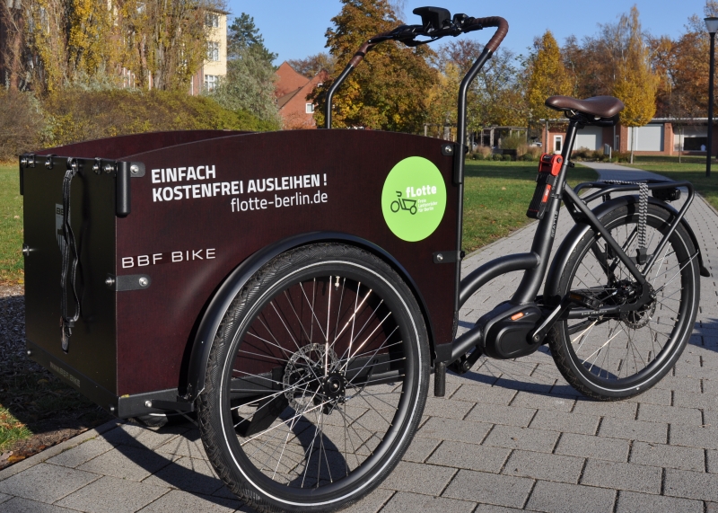 Im Evangelischen Johannesstift freut sich der fLotte Hinrich darauf, Kinder, Getränkekisten, Blumenerde oder den Großeinkauf durch den Spandauer Norden zu schaukeln. Ein Regenverdeck hält die Ladung auch bei herbstlichem Regen trocken.
