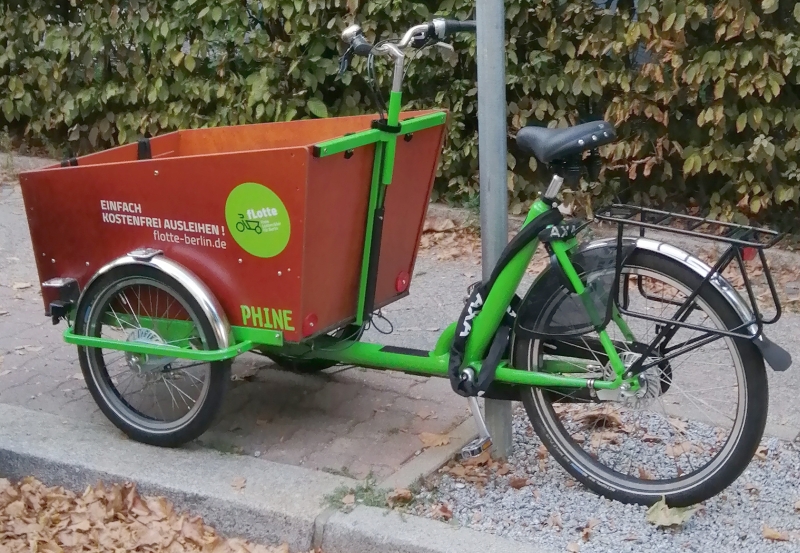 Bei der Friedenauer Weinhandlung am Breslauer Platz und beim Süßkramdealer am Varziner Platz sind fLotte Bakfietsen frisch eingetroffen. Ein nobler privater Spender überlässt die beiden Räder der fLotte – Rika in fröhlichem Orange, Phine in fLottem Grün.