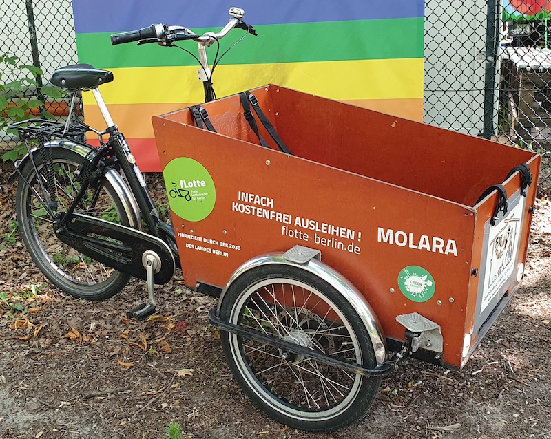 Das erste der vier Lastenräder des Projekts Green Moabit rollt an den Start: Die fLotte Molara steht nun am Moabiter Kinderhof für Touren mit und ohne Kinder bereit.