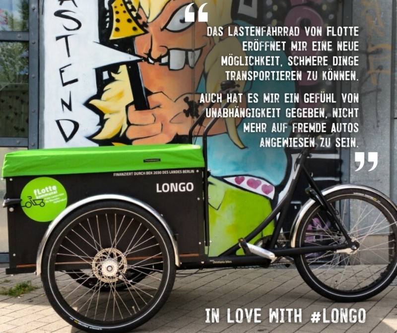 Die Lastenräder der fLotte stehen an immer mehr Standorten in Berlin kostenfrei zur Ausleihe bereit. Sie sind einfach zu fahren und der Umstieg macht Spaß! Mit jeder Lastenradtour kommen wir unserem Ziel ein Stück näher: Einer Stadt für Menschen – ohne zugeparkte Straßen, ohne schlechte Luft und ohne Klimabelastung: mehr.
