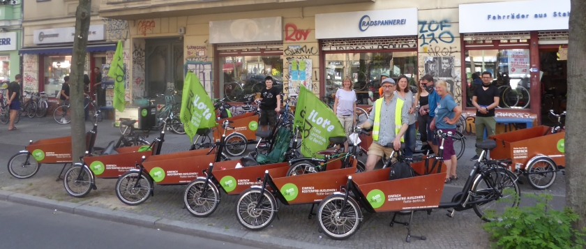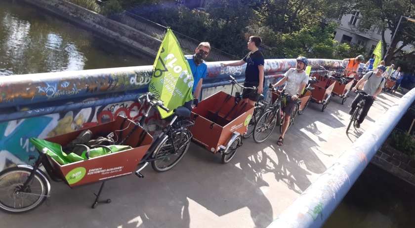 Interessierte konnten Probefahrten mit den verschiedenen Lastenrädern machen, in den Austausch mit Aktiven im Projekt kommen und außerdem Namensvorschläge und Wunsch-Standorte für die künftigen weiteren Lastenräder der fLotte einbringen. Zur Feier des Tages zeigten sich die Räder mit frischer Beklebung samt weiter entwickeltem fLotte-Logo.